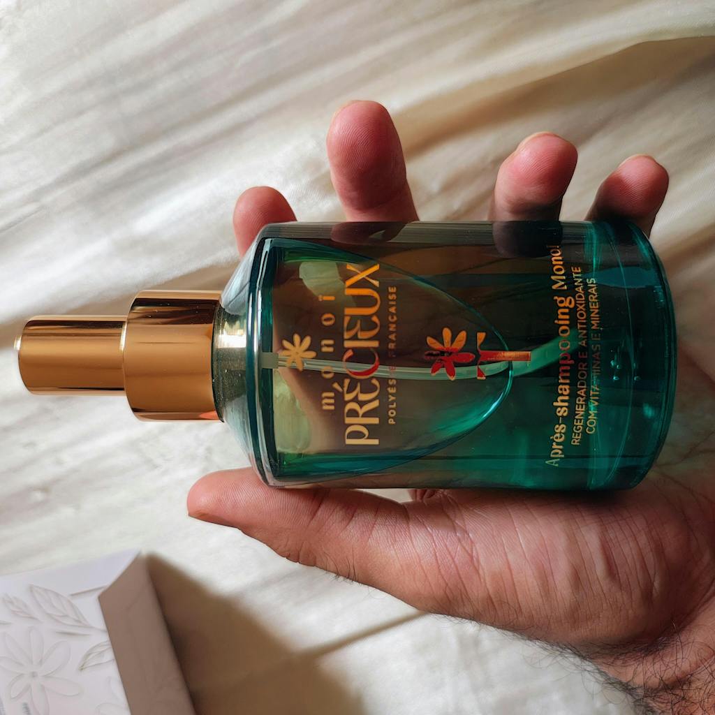 Borrifar o Monoi Précieux Body Splash a cerca de 20–30 cm de distância, criando uma névoa sobre o corpo, evitando rosto e olhos.